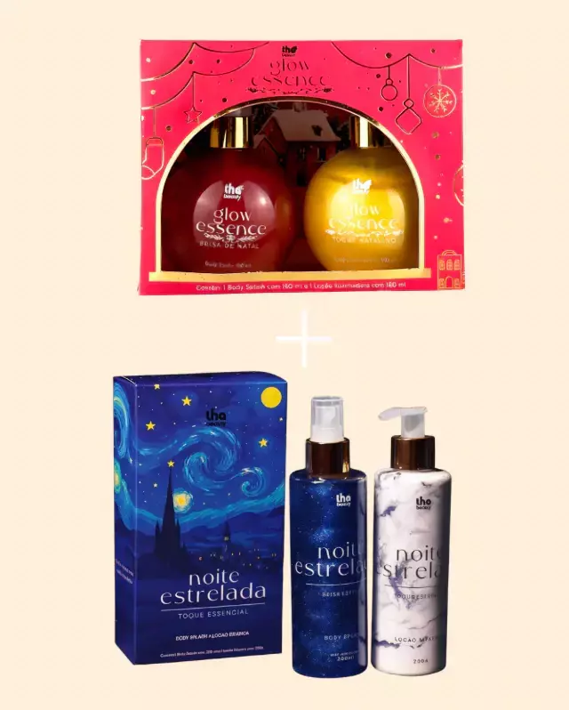 Brilho + hidratação + fragrância marcante: o Glow entrega luminosidade e elegância; o Noite Estrelada traz um perfume intenso e sofisticado.